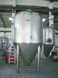 我廠設計的發(fā)酵罐為標準式罐型,這種罐型當公稱容積在6m以下時罐采用夾套式。發(fā)酵氣的冷卻或加熱,均由夾套來完成。公稱容積為6m以上時,發(fā)酵氣的冷卻由立式盤管來擔負,在罐內(nèi)盤管的連接方面我們作了改進。這主要避免在罐體上多開孔,開成死角。這種連續(xù)方式在實際使用中得到滿意的效果。